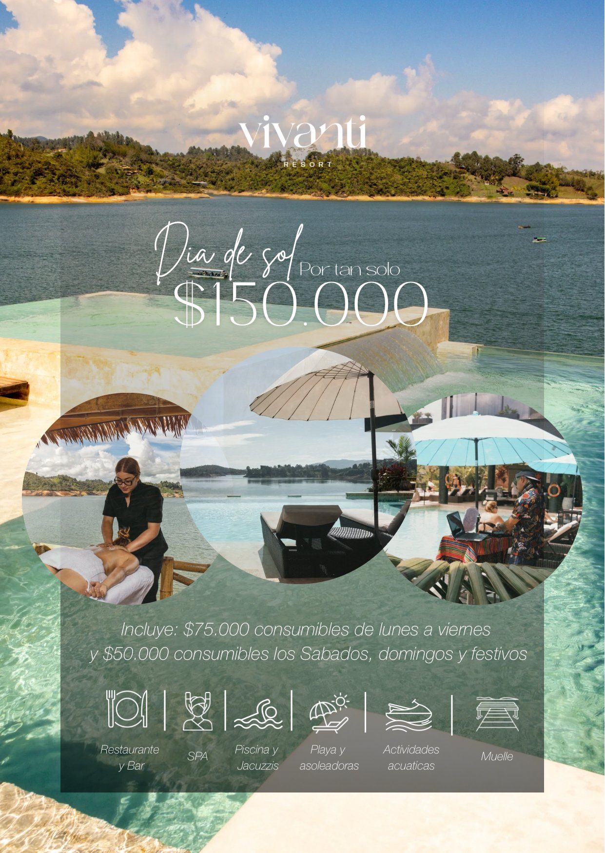 En Vivanti Resort cada experiencia está pensada para que desconectes, disfrutes y vivas Guatapé desde una perspectiva diferente. Actividades acuáticas, espacios de descanso y planes diseñados para crear recuerdos inolvidables.