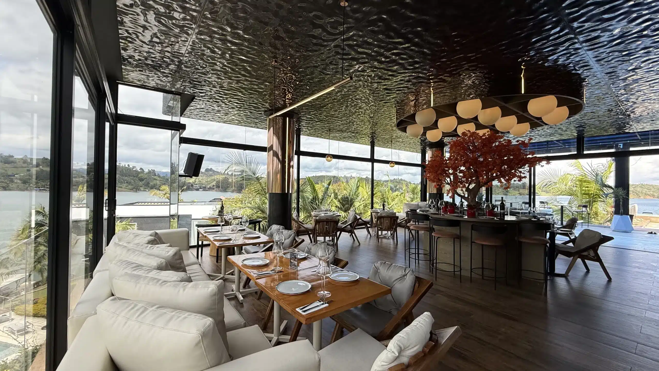 Amaré Guatapé es un restaurante único ubicado en Guatapé, que ofrece una experiencia culinaria de fusión mediterránea y latina en un entorno espectacular. Su principal atractivo es su vista panorámica de 360 grados a la represa de Guatapé, permitiéndote disfrutar de paisajes inigualables y atardeceres mágicos mientras saboreas sus platos.